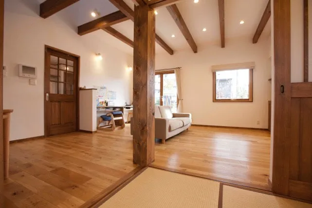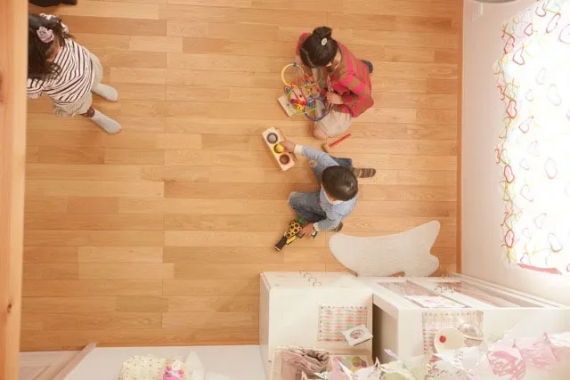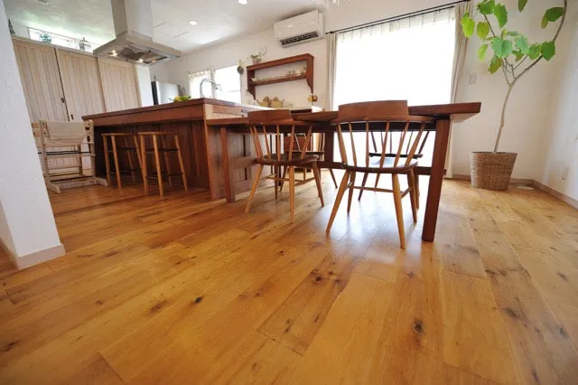 無垢フローリングは、ついつい寝転びたくなるような気持ちよさが一番の魅力です。特に冬は温かく、夏にはサラリとした心地よさを感じていただけます。また無垢フローリングは、樹種や材の幅によって特徴や表情が異なります。小さなお子さんがいらっしゃるご家庭には、汚れや傷が気にならないものをオススメするなど、ご希望やライフスタイルに応じたタイプをご提案します。