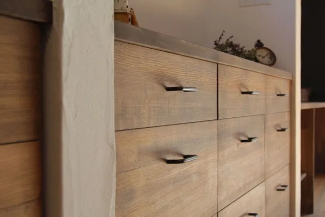 木部の仕上げには、好きな色の塗料を塗って仕上げます。木の質感を損なわないよう、塗料は木目が美しく見え、体に害のない植物性オイルを使用。過度にテカらないマットな仕上がりを心掛け、既製品では感じることのできない雰囲気と、統一感のある空間をつくっています。