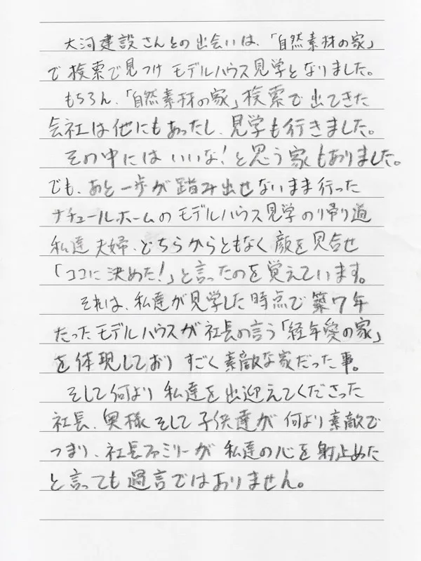 それは、私達が見学した時点で築7年たったモデルハウスが社長の言う「経年愛の家」を体現しておりすごく素敵な家だったこと。そして何より私達を出迎えてくださった社長、奥様そして子供達が何より素敵でつまり、社長ファミリーが私達の心を射止めたと言っても過言ではありません。