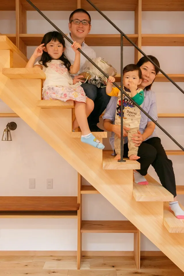 最初の打ち合わせの後、プランを見せて頂いたときの高揚感は忘れられません。妻の要望であった階段横の天井まで続く本棚。娘の要望であったロフトに続く梯子。私の要望であった「木」を感じられる内装・外装。ぼんやりとした夢をカタチに変えて頂いた!こんな格好いい家を建てて頂けるのか!とうれしく思いました。
