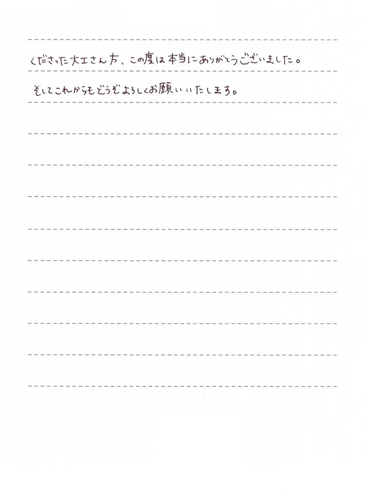 最後になりますが、高橋社長、スタッフの皆様、家づくりに関わってくださった大工さん方、この度は本当にありがとうございました。そして、これからもどうぞよろしくお願いいたします。