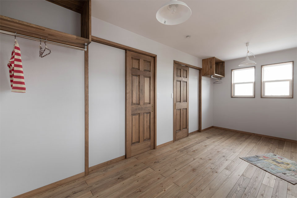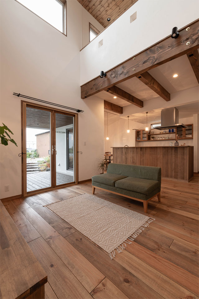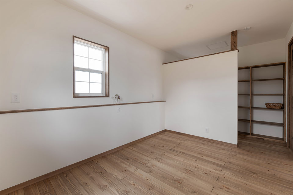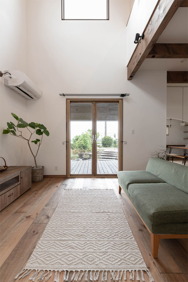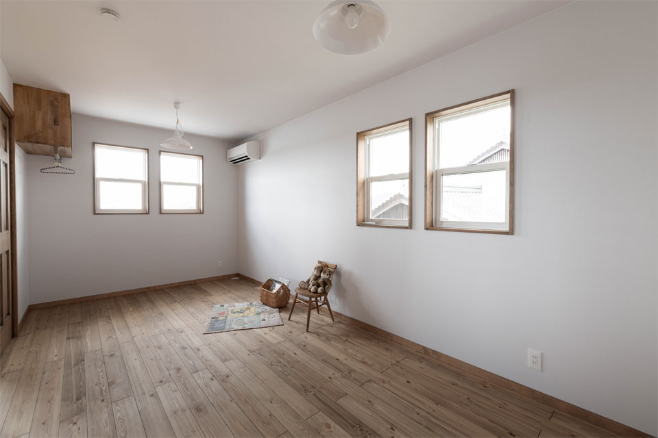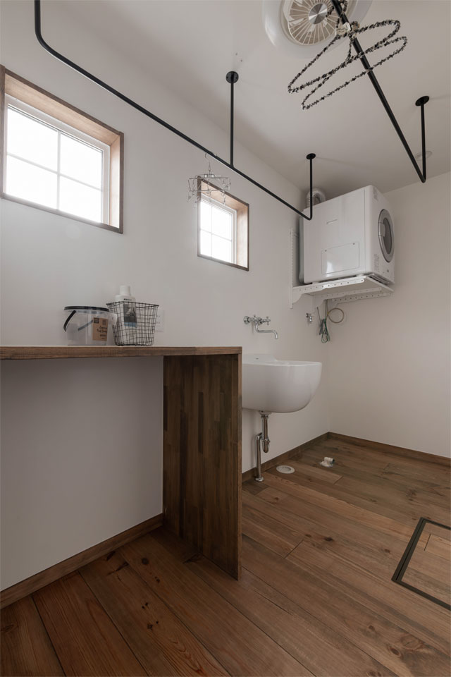 家事と子育てが少しでも楽になるようランドリールームを確保し、自然素材の内装と24時間換気で年中カラッと乾く快適さも備えています。
