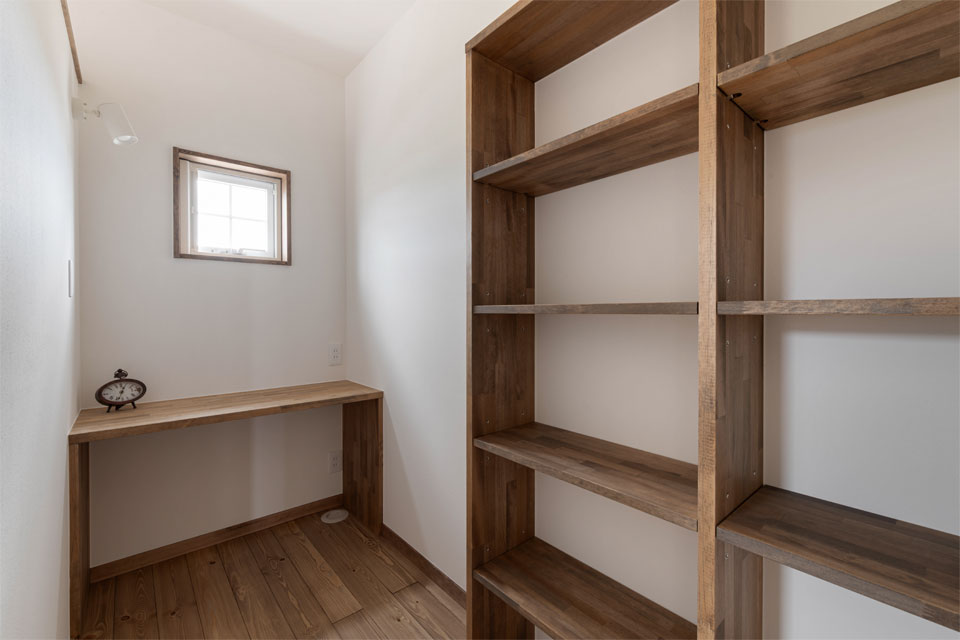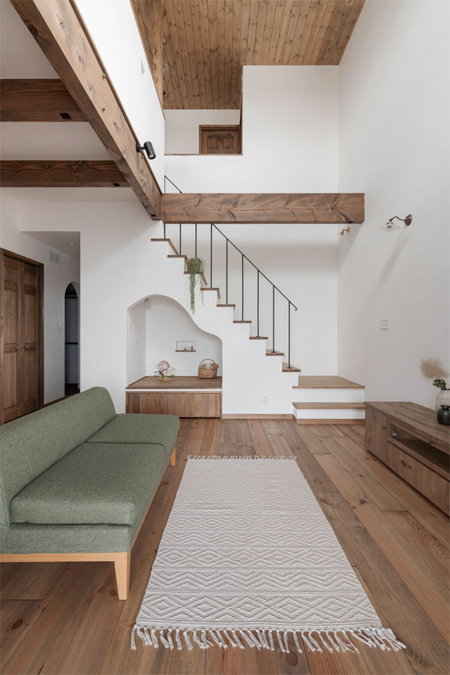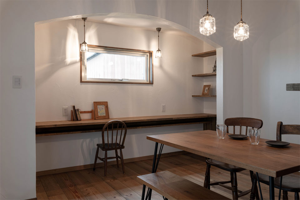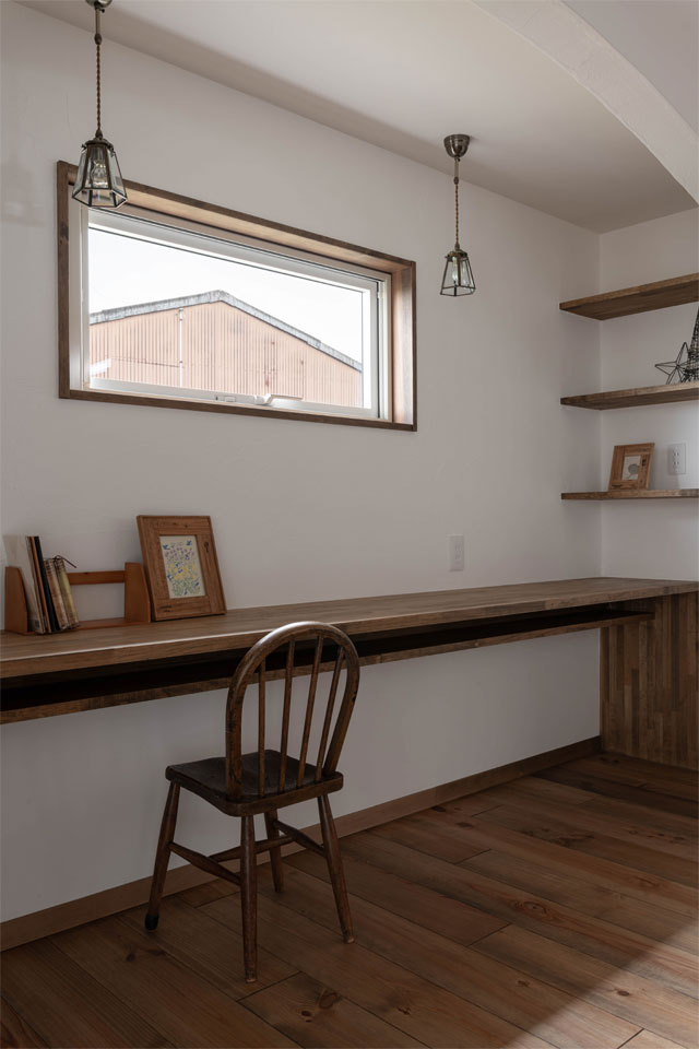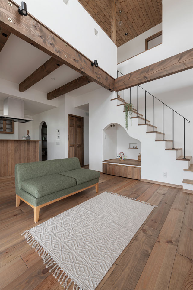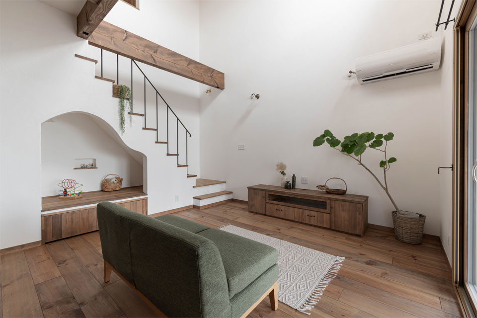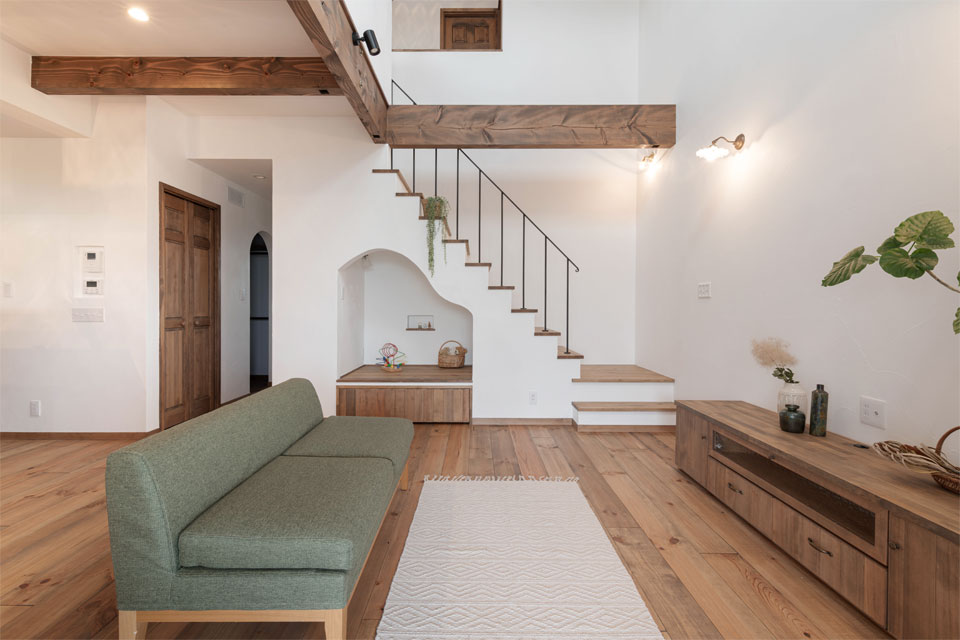 階段下にはお子さんたちのお気に入りになりそうなヌックスペースを、LDKの一角にはママがそっと見守れるスタディーコーナーを設け、家族の距離が自然と近くなる空気感を大切にしました。