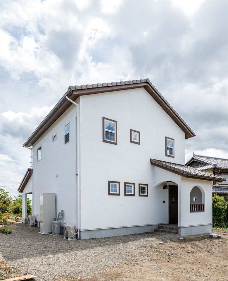 真っ白な漆喰の外観や、家事動線と収納をとことん考え抜いた設計、造作収納の充実度合など、暮らしやすさとかわいさをどちらも大切にした住まいが完成しました。