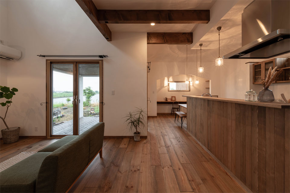 初めて土地を拝見した日、目の前に広がる川と空の景色に、一瞬で心を奪われました。「ここに、諏訪さまご家族の家が建つ」…そう思うだけで胸が高鳴り、その時すでに、どんな暮らしができるのかイメージが膨らんでいったのを覚えています。
