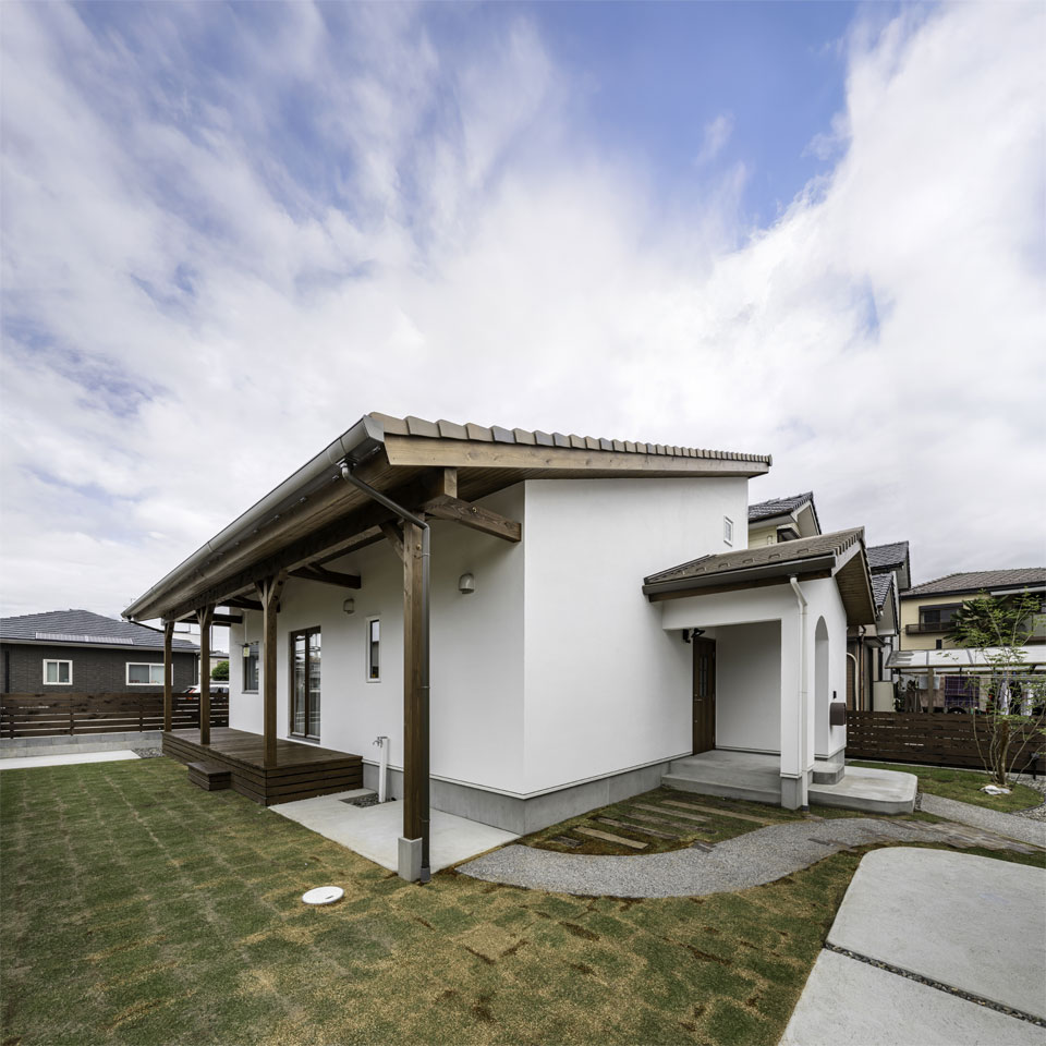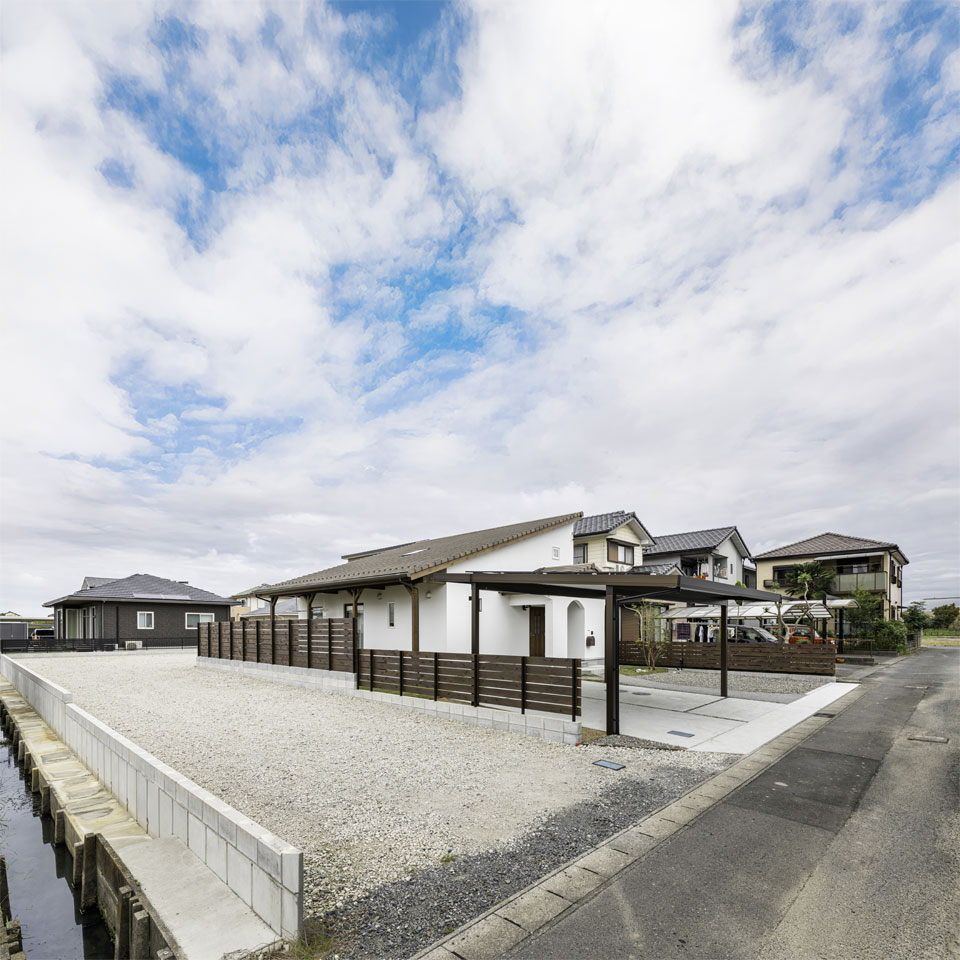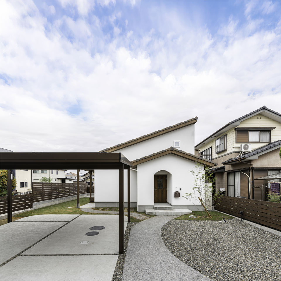 羽島市内の便利な場所に、真っ白な漆喰壁と片流れ屋根が美しい、やわらかな雰囲気のお家が完成しました。