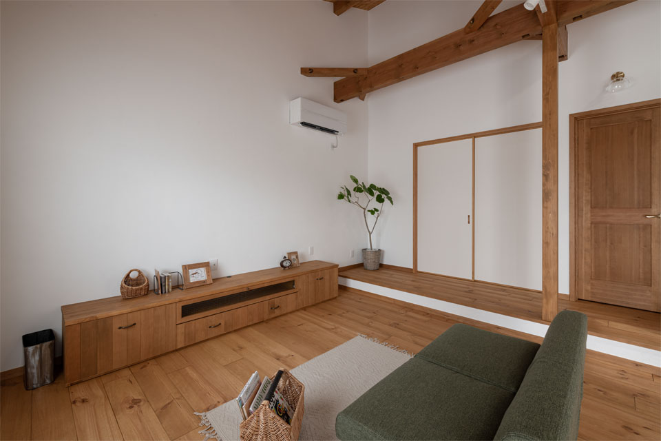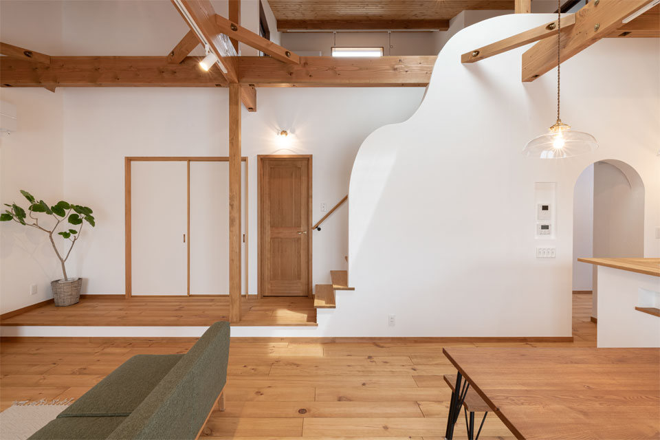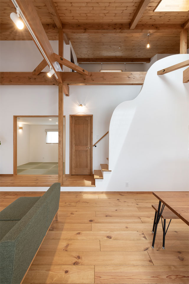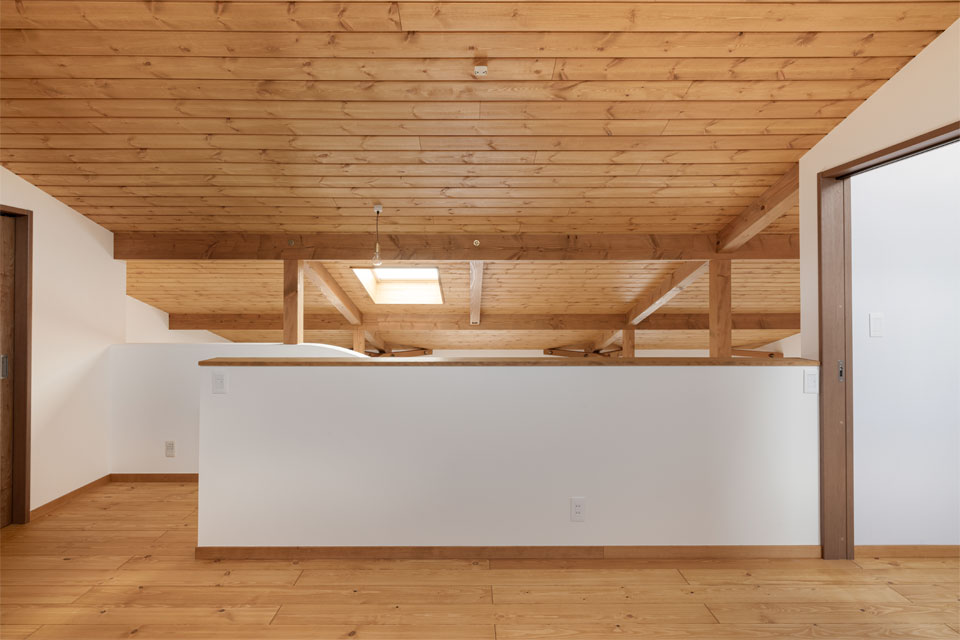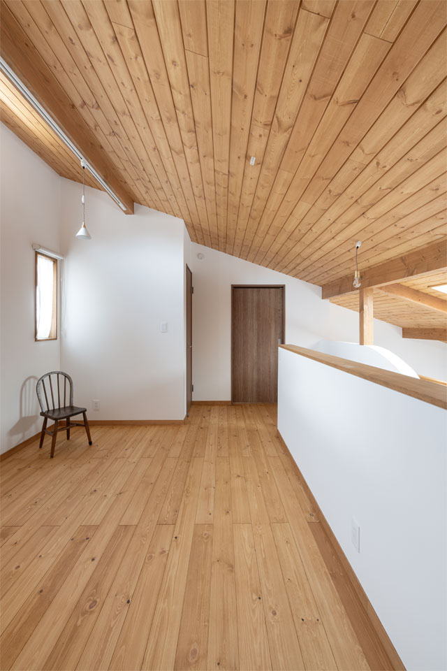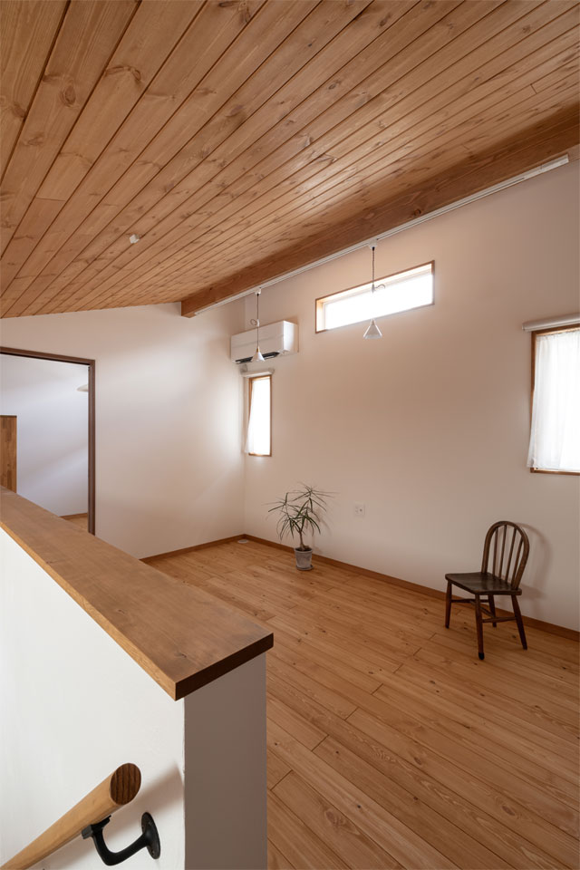 そして、2階のセカンドリビングもこのお家の特徴です。お子さんたちの遊び場にも、ご家族のくつろぎの場にもなる、自由度の高いのびやかなスペースです。「家の中で、それぞれが思い思いに好きな場所で過ごせるように」…そんなご夫婦の想いが、この家全体にやさしい空気となって流れています。